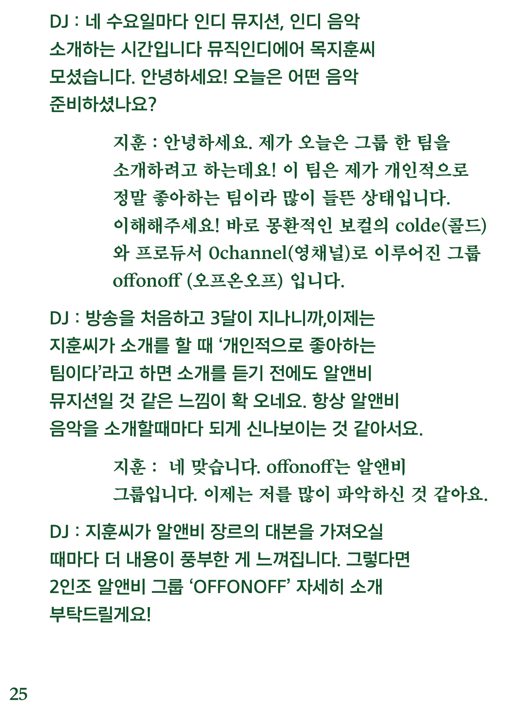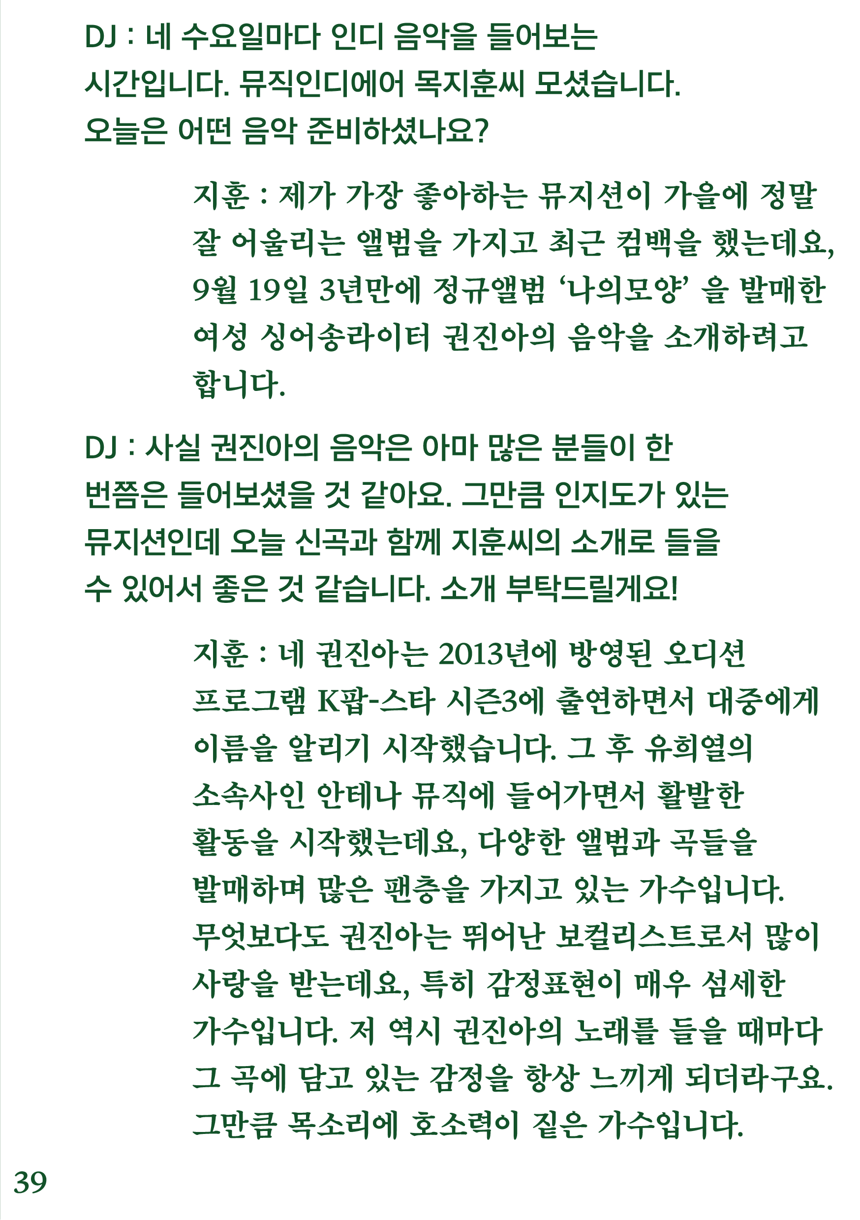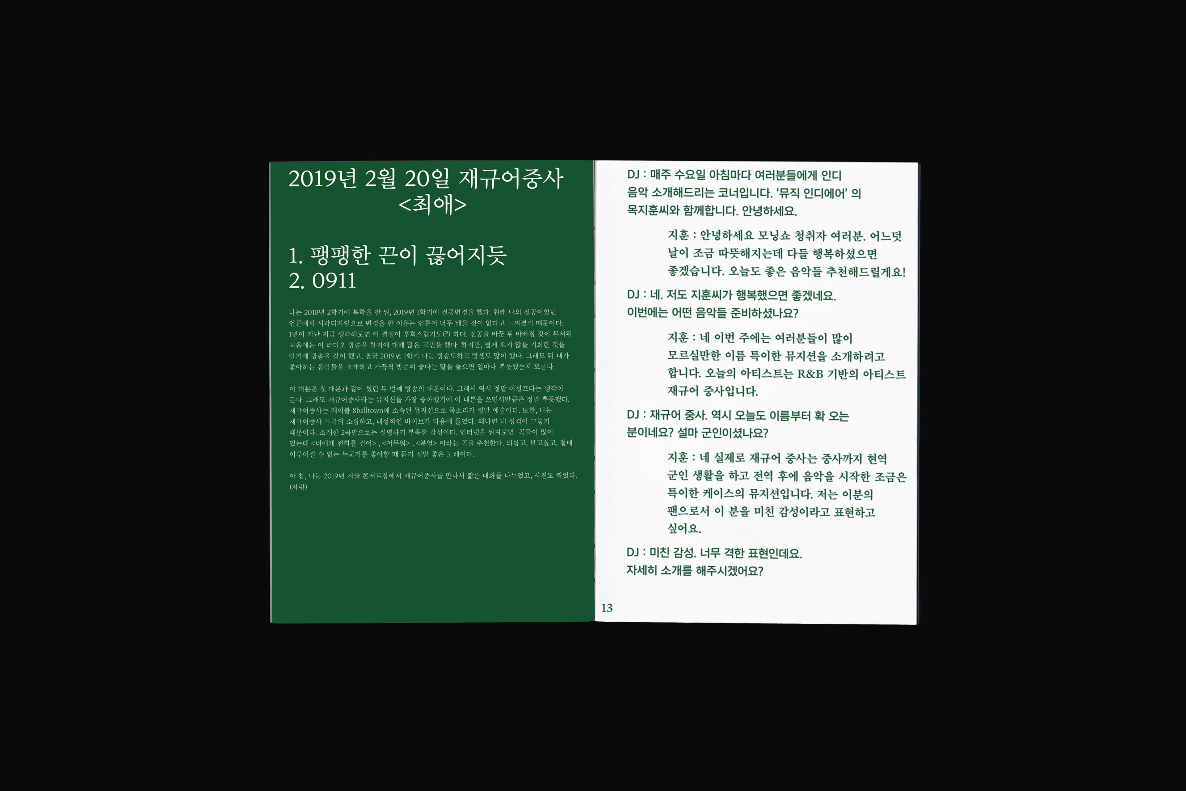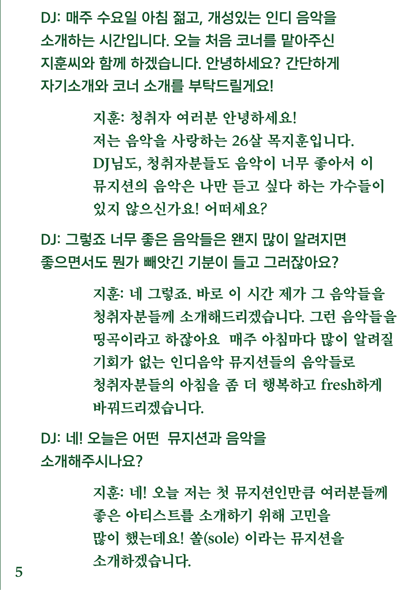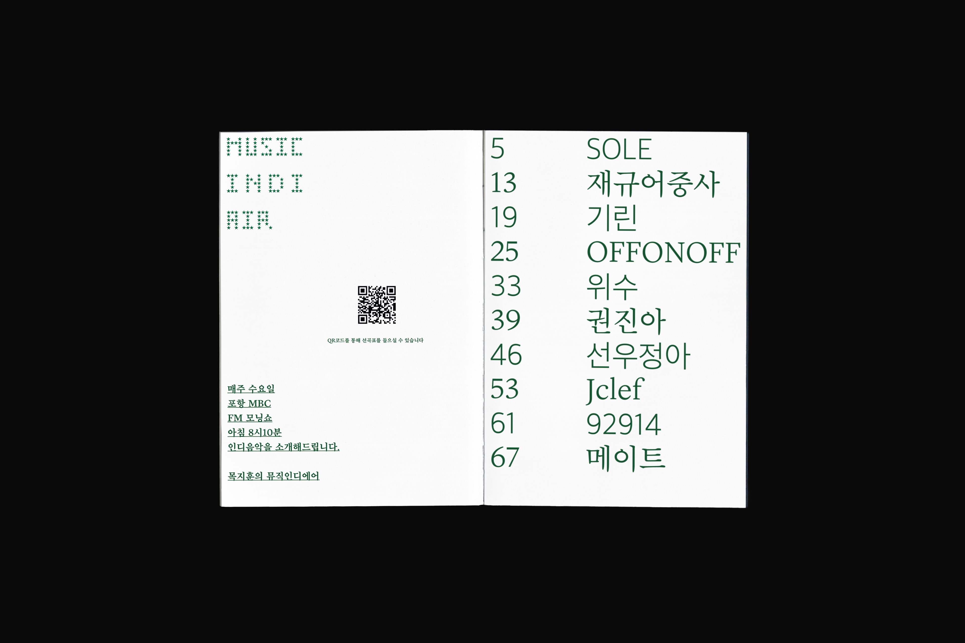 포항 MBC 모닝쇼의 코너 [뮤직 인디에어]의 대본을 책으로 기록
