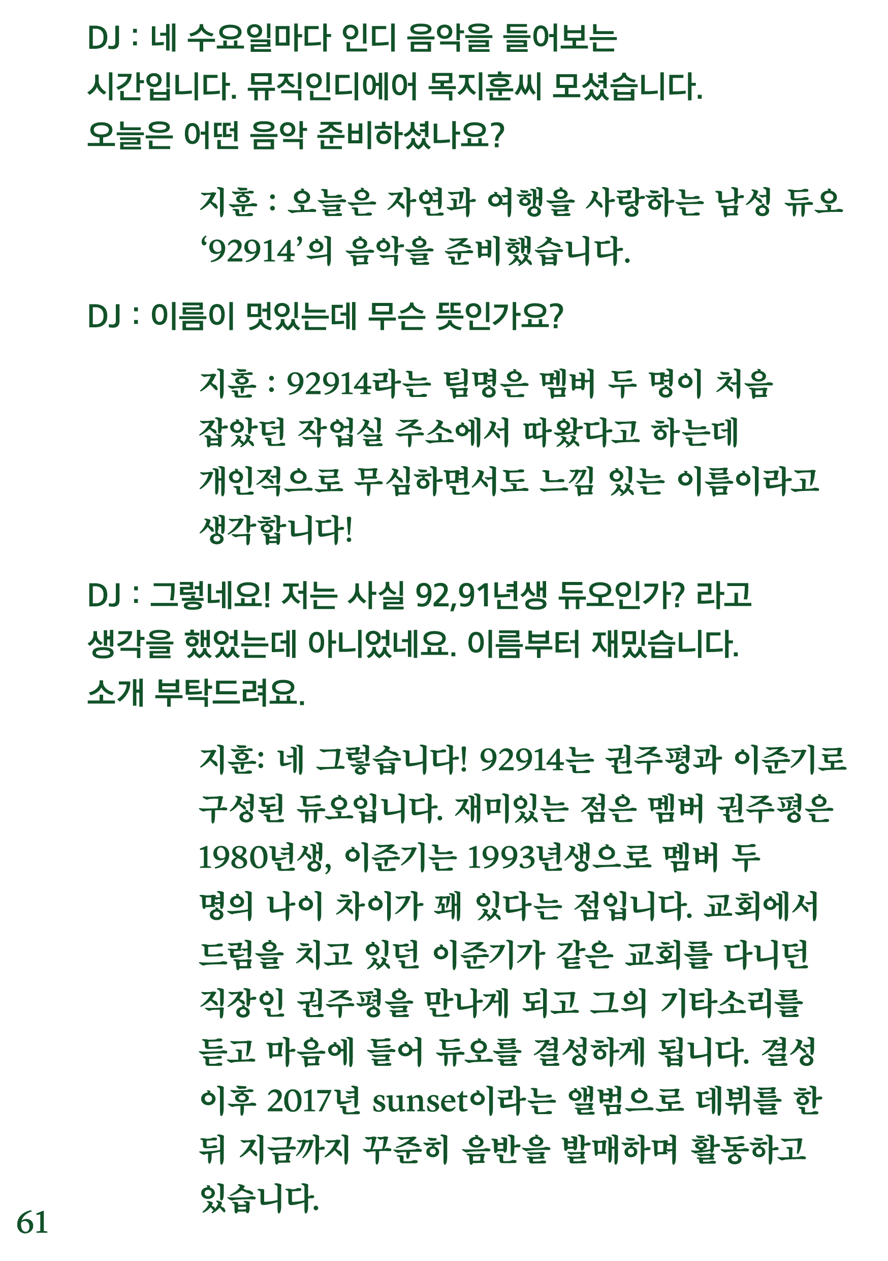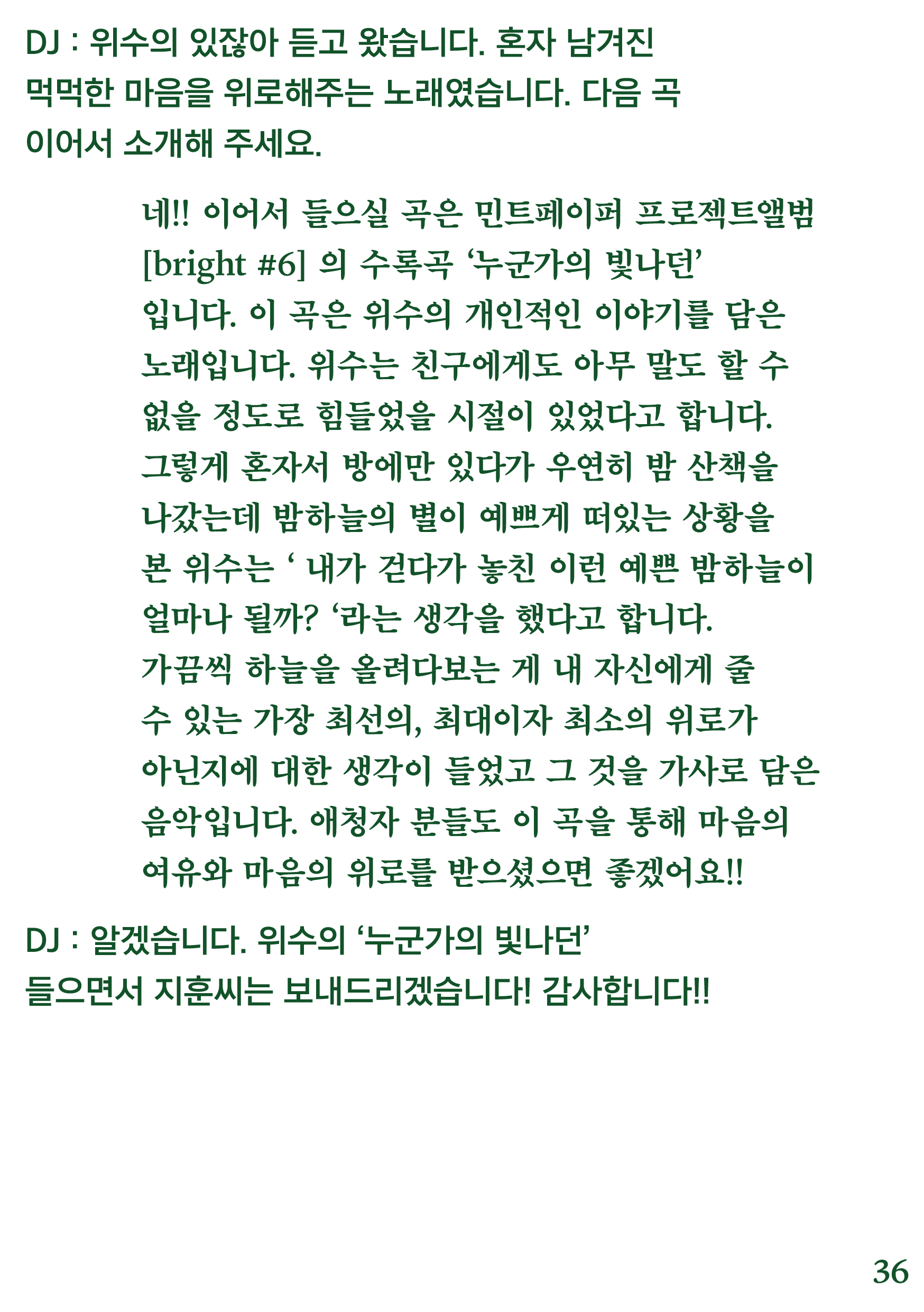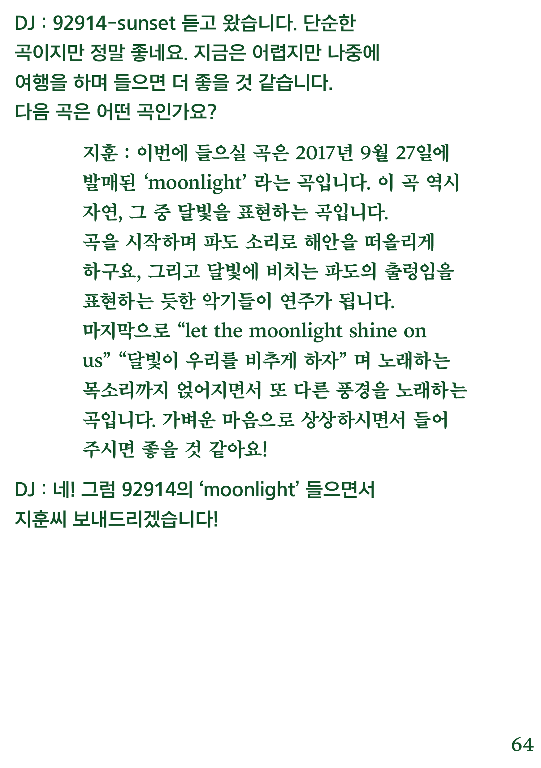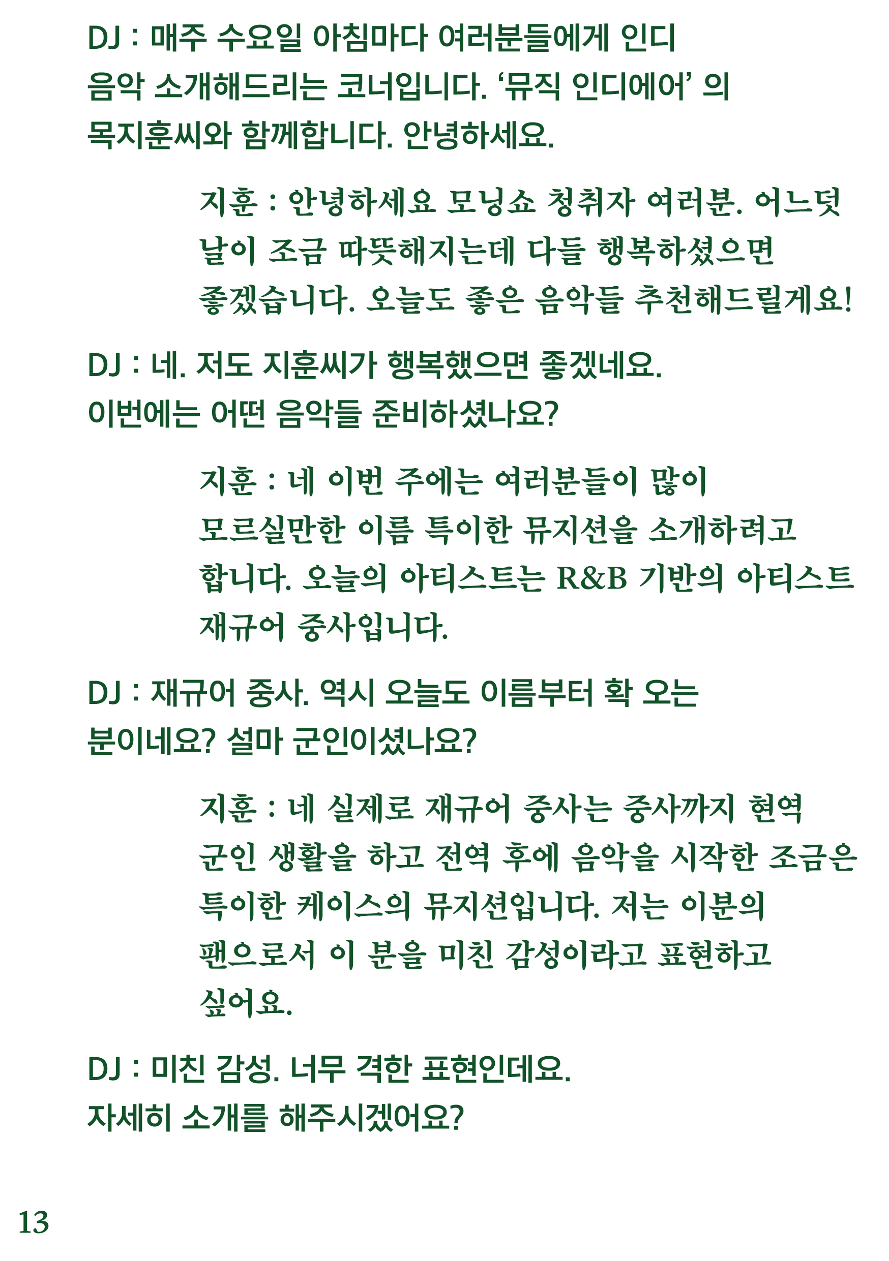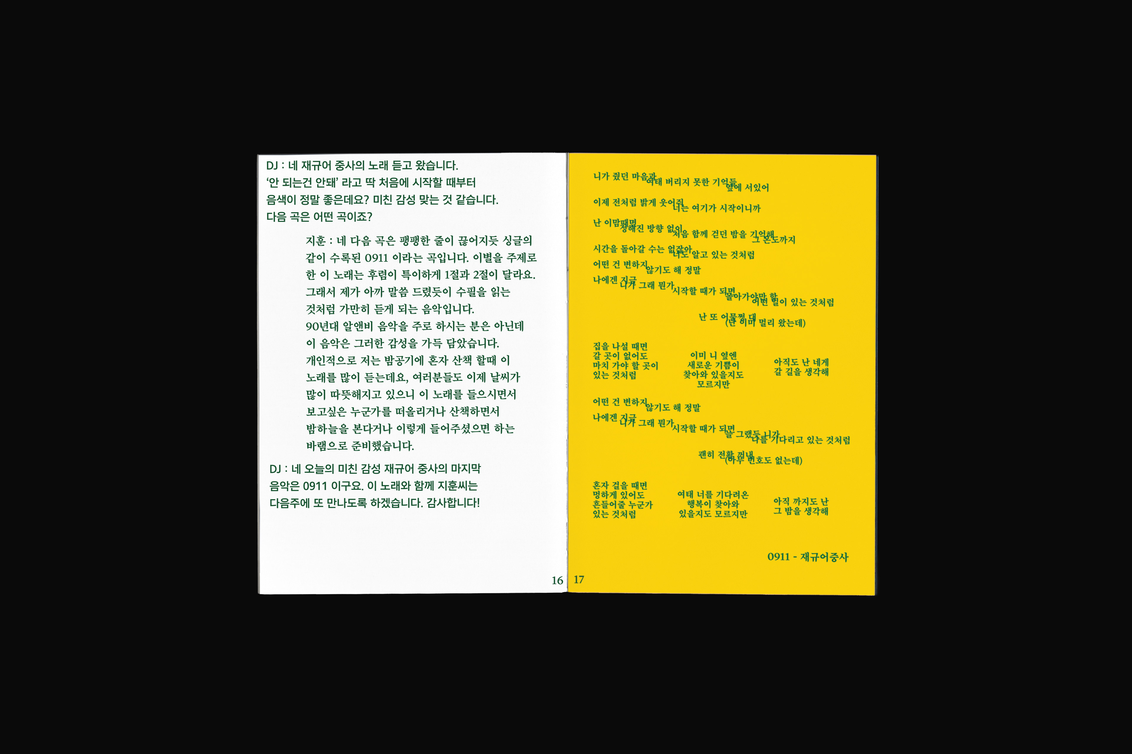 포항 MBC 모닝쇼의 코너 [뮤직 인디에어]의 대본을 책으로 기록