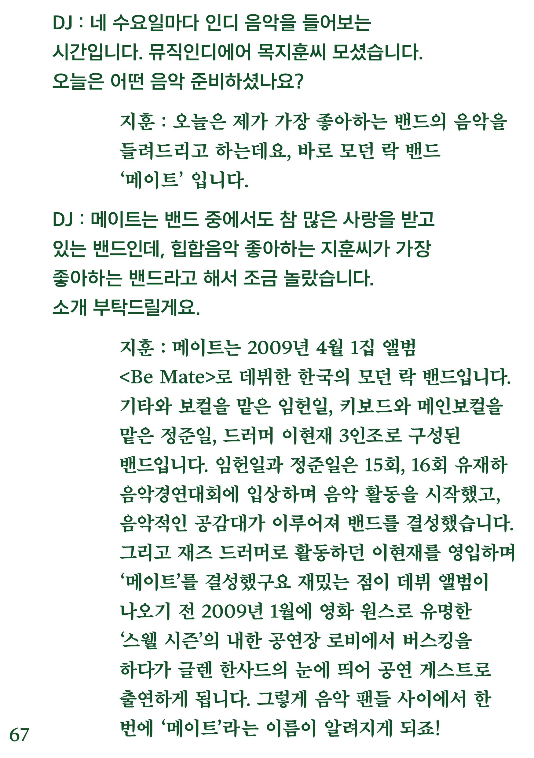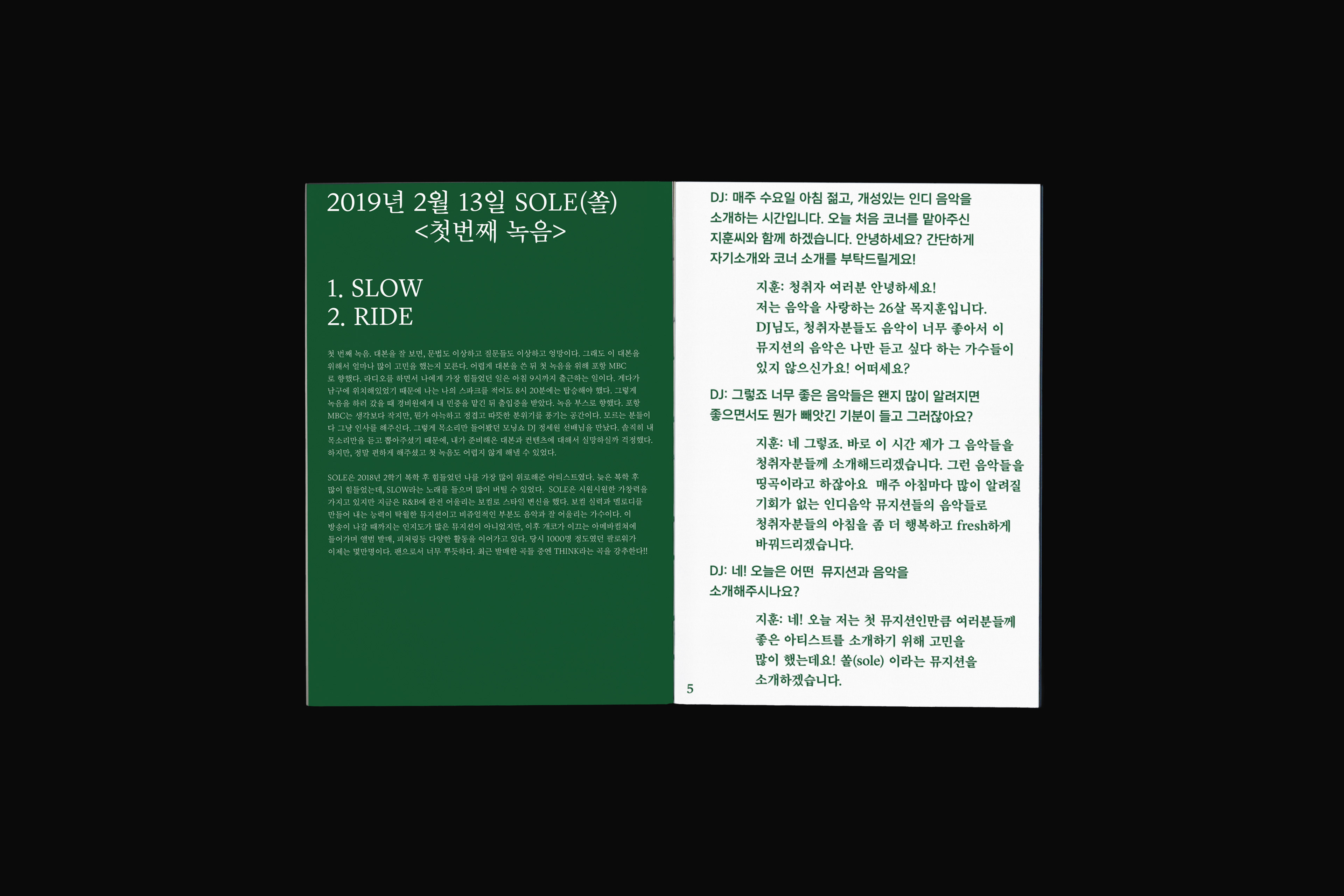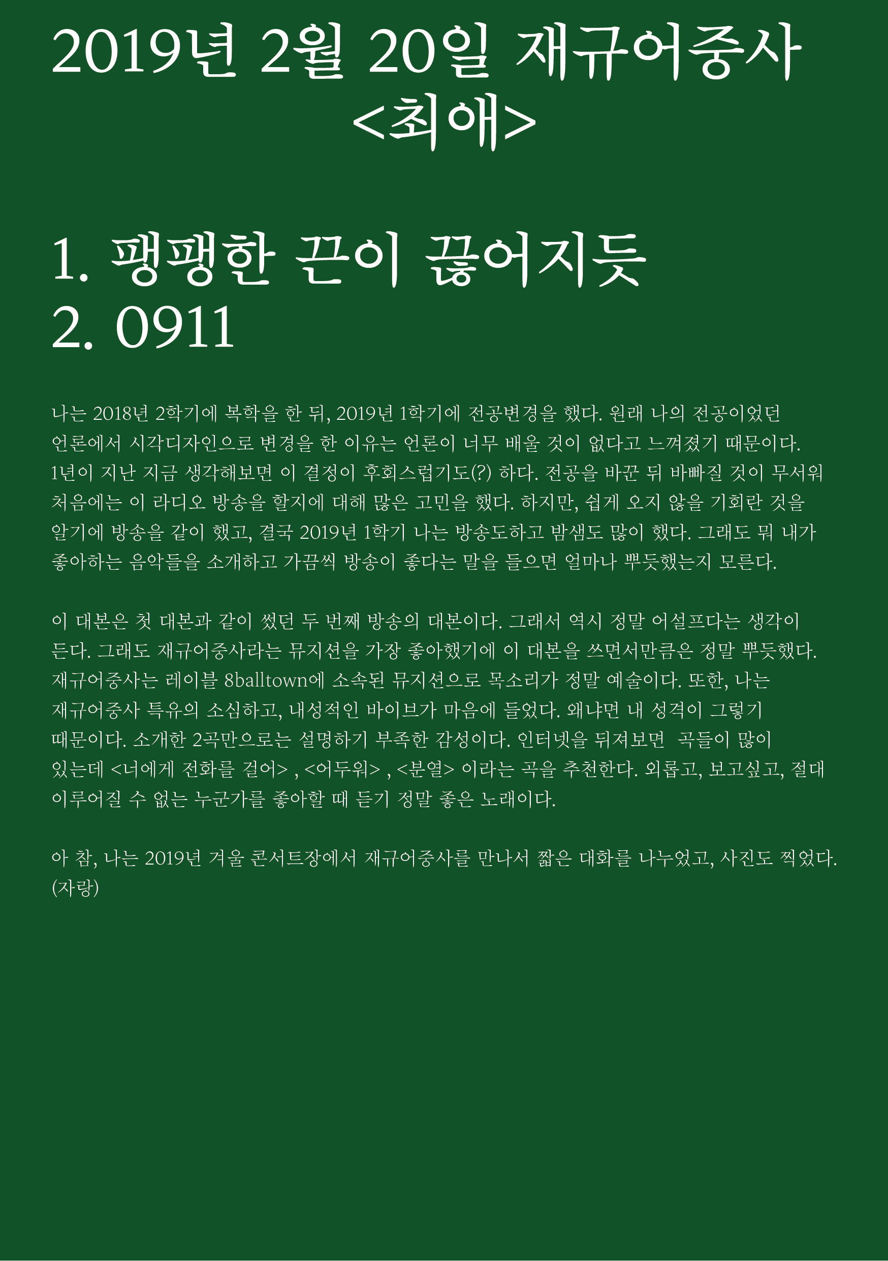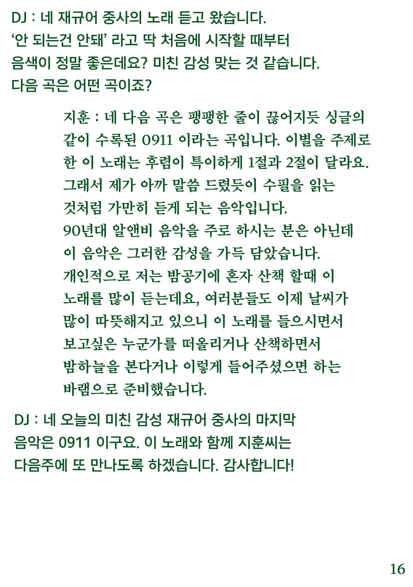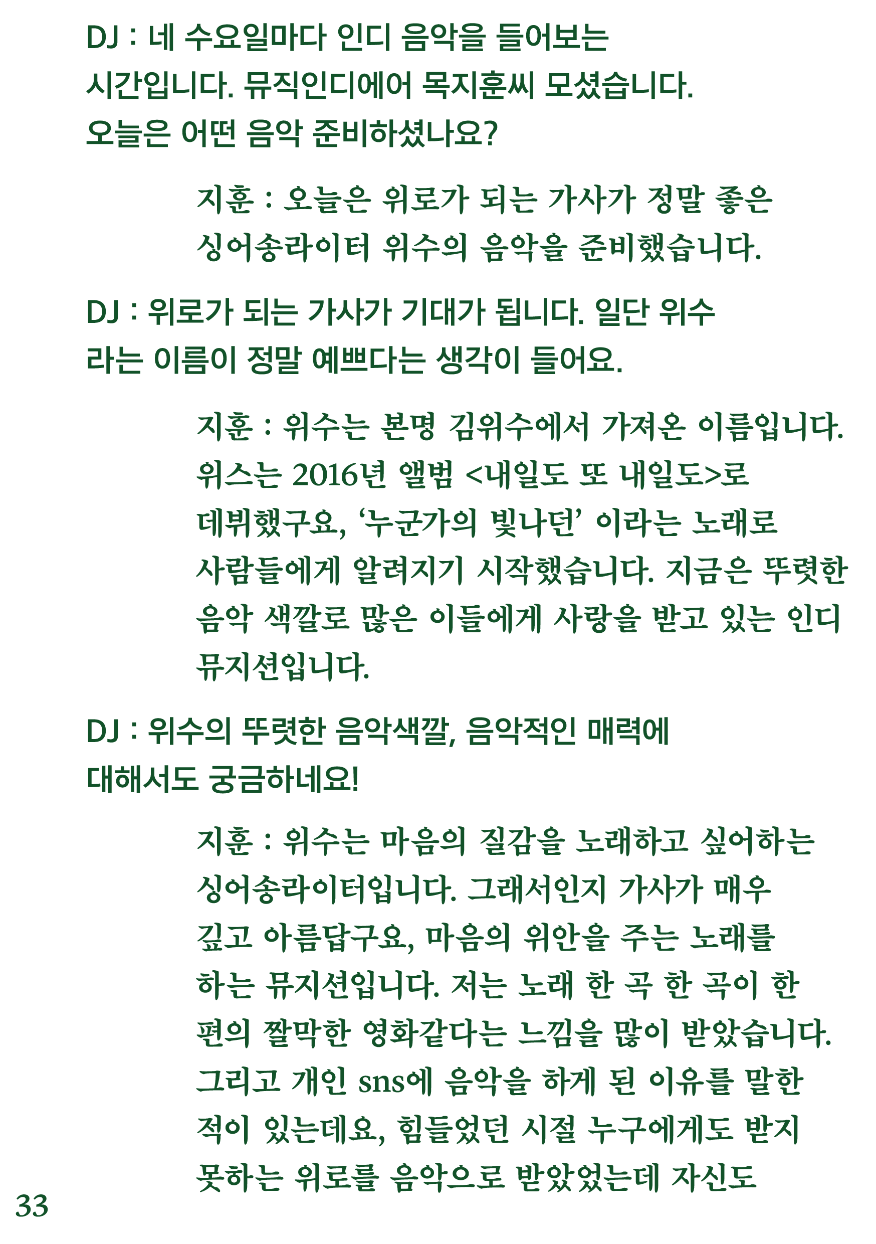 포항 MBC 모닝쇼의 코너 [뮤직 인디에어]의 대본을 책으로 기록