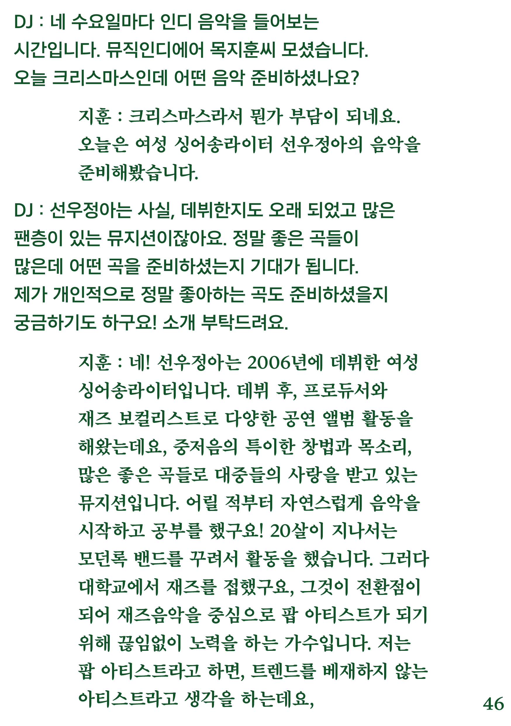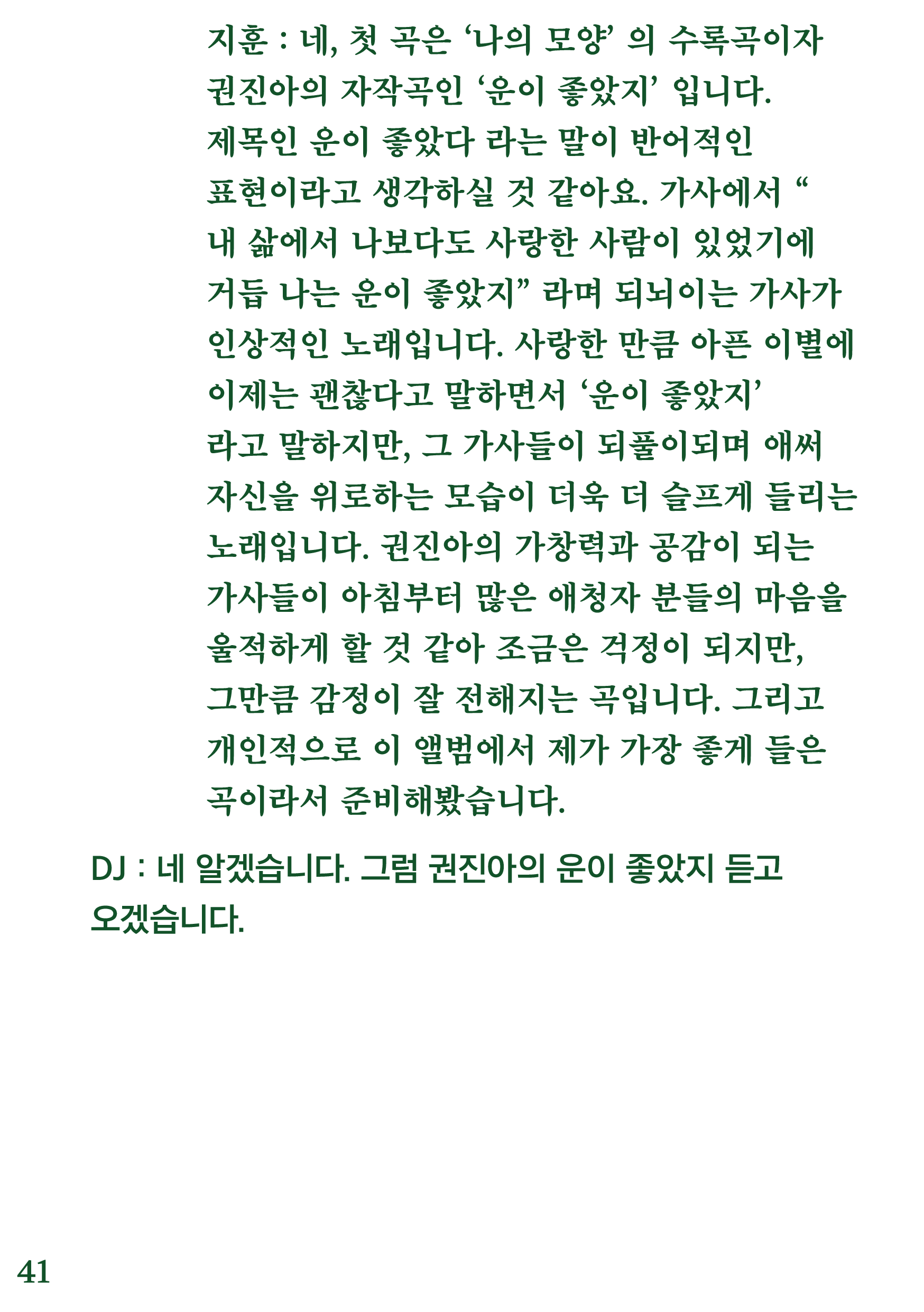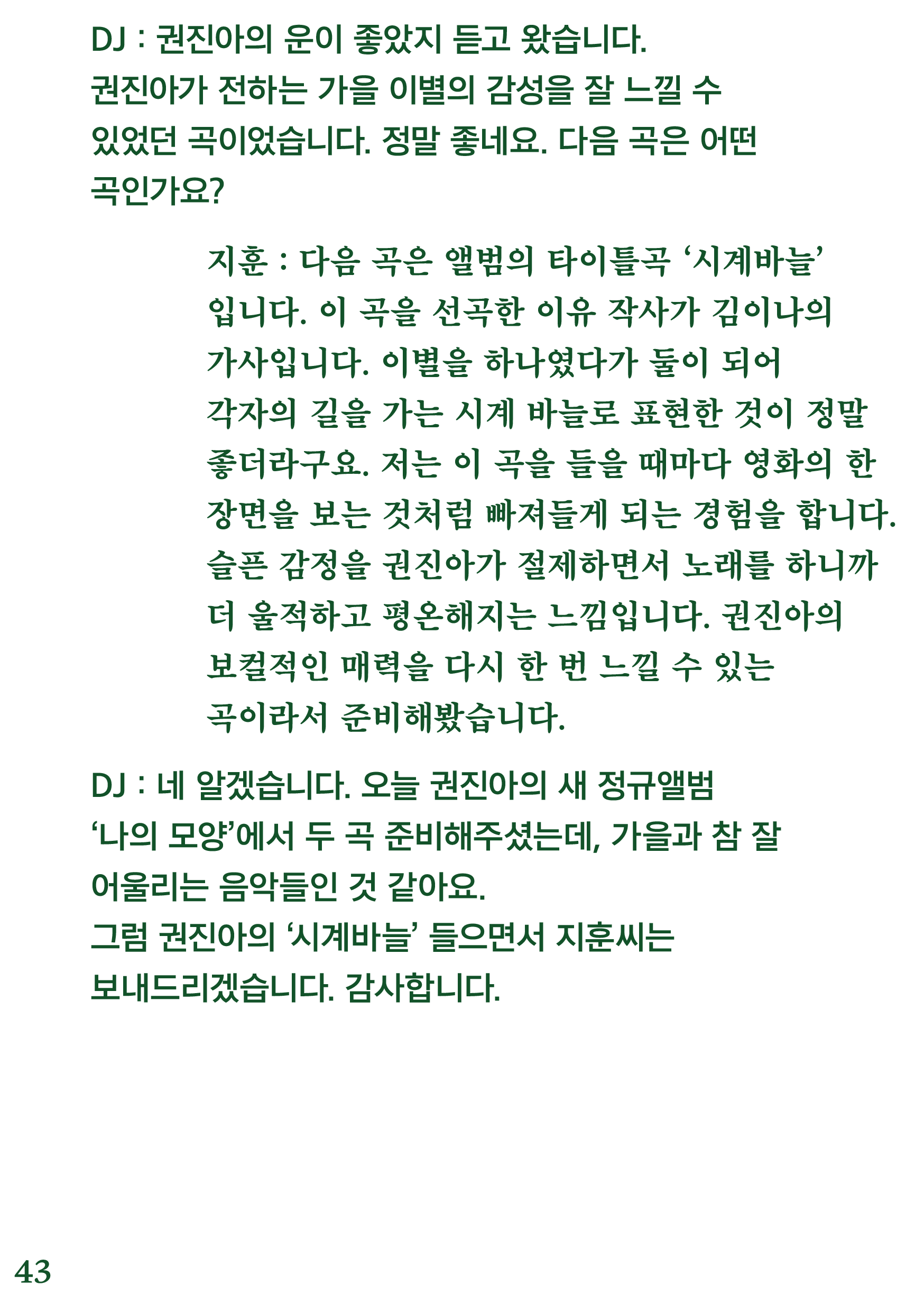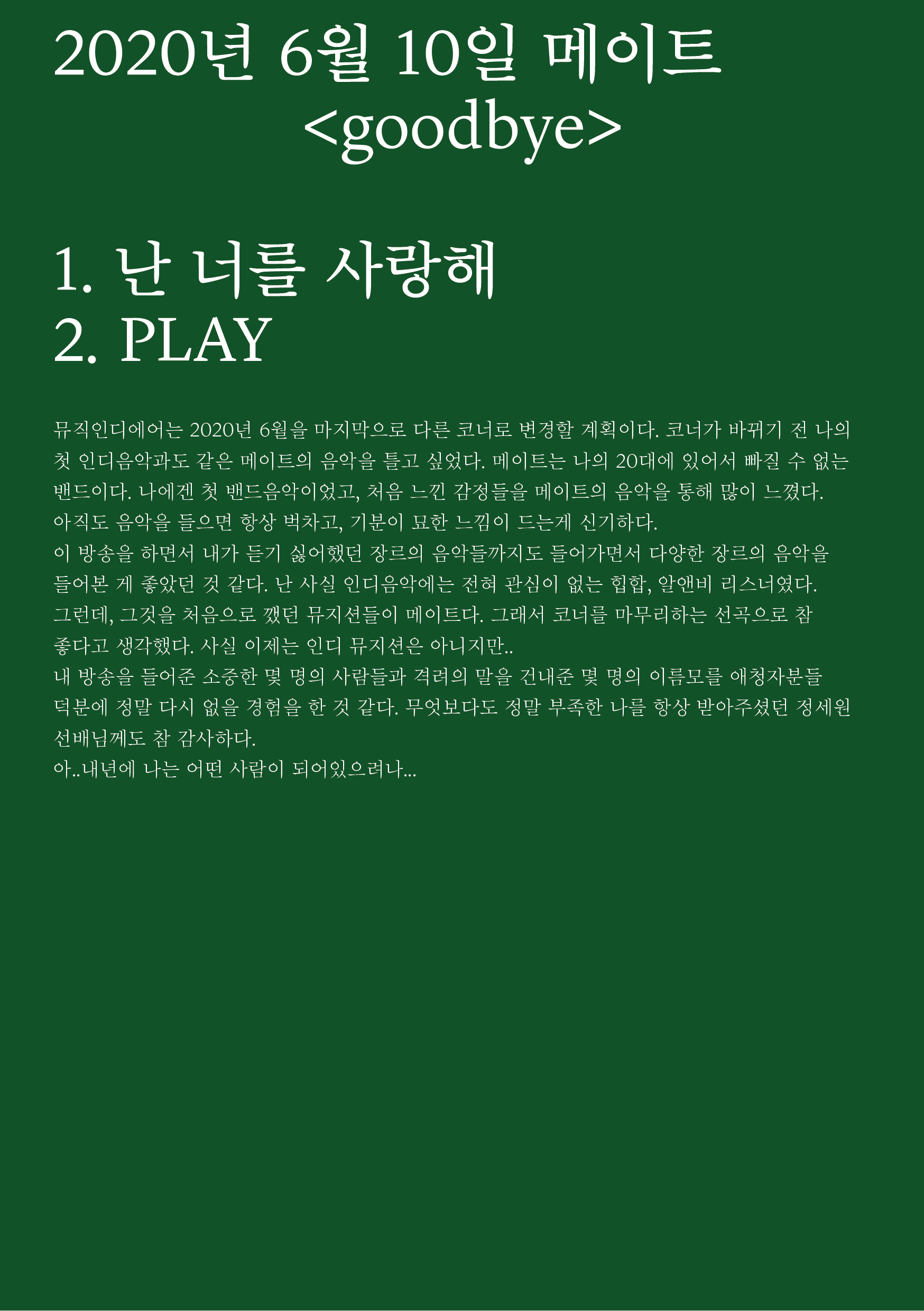 포항 MBC 모닝쇼의 코너 [뮤직 인디에어]의 대본을 책으로 기록