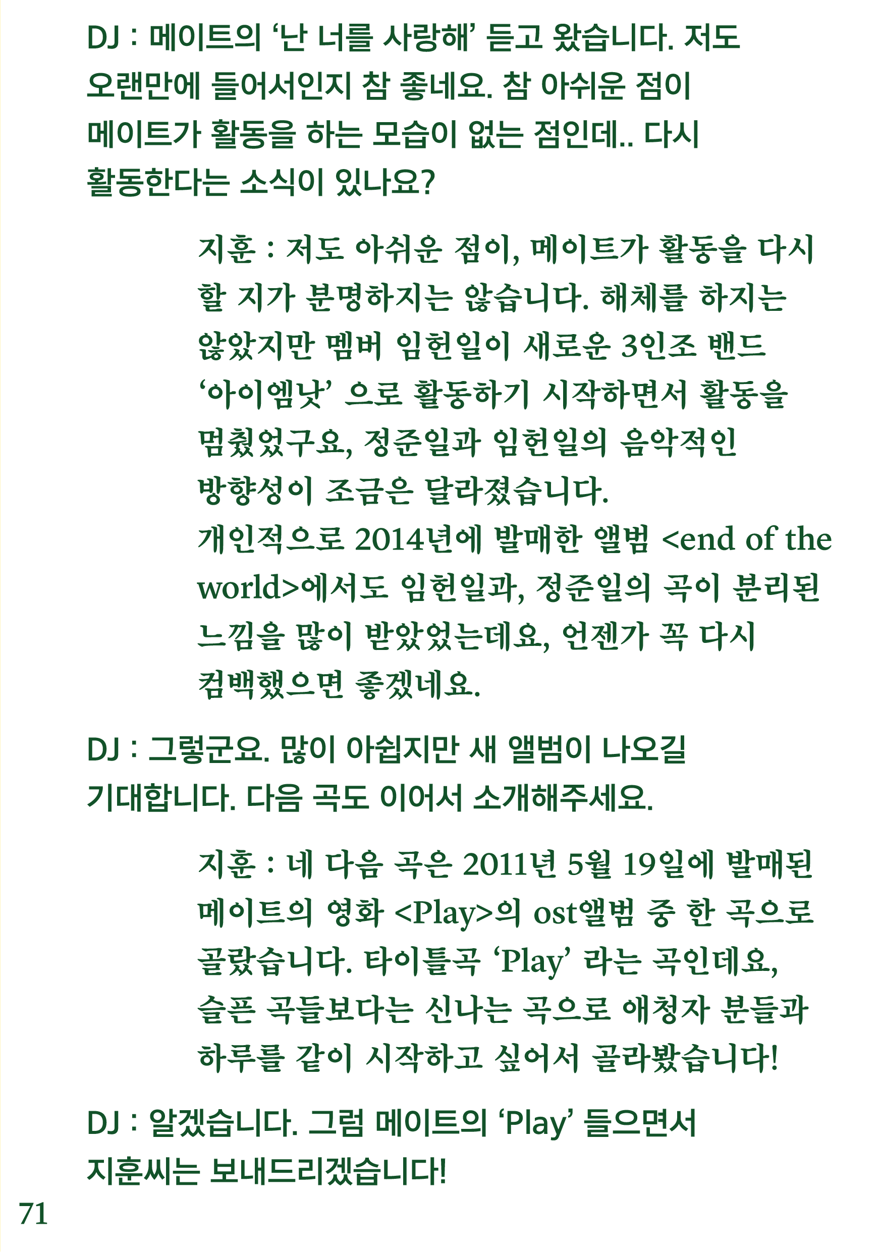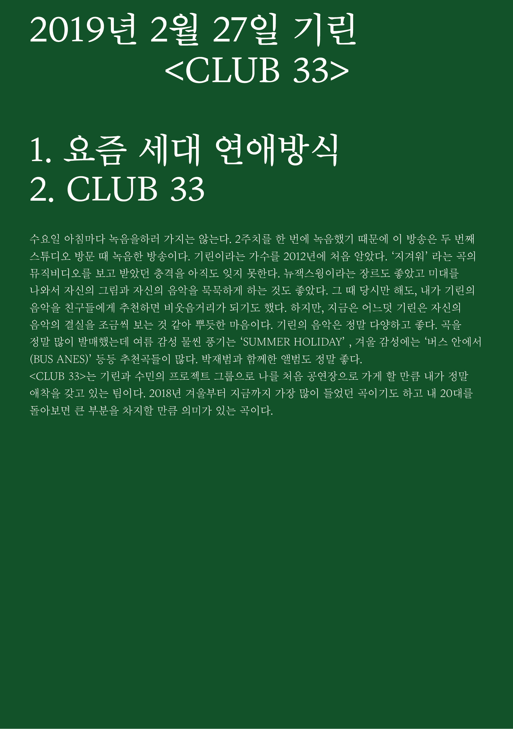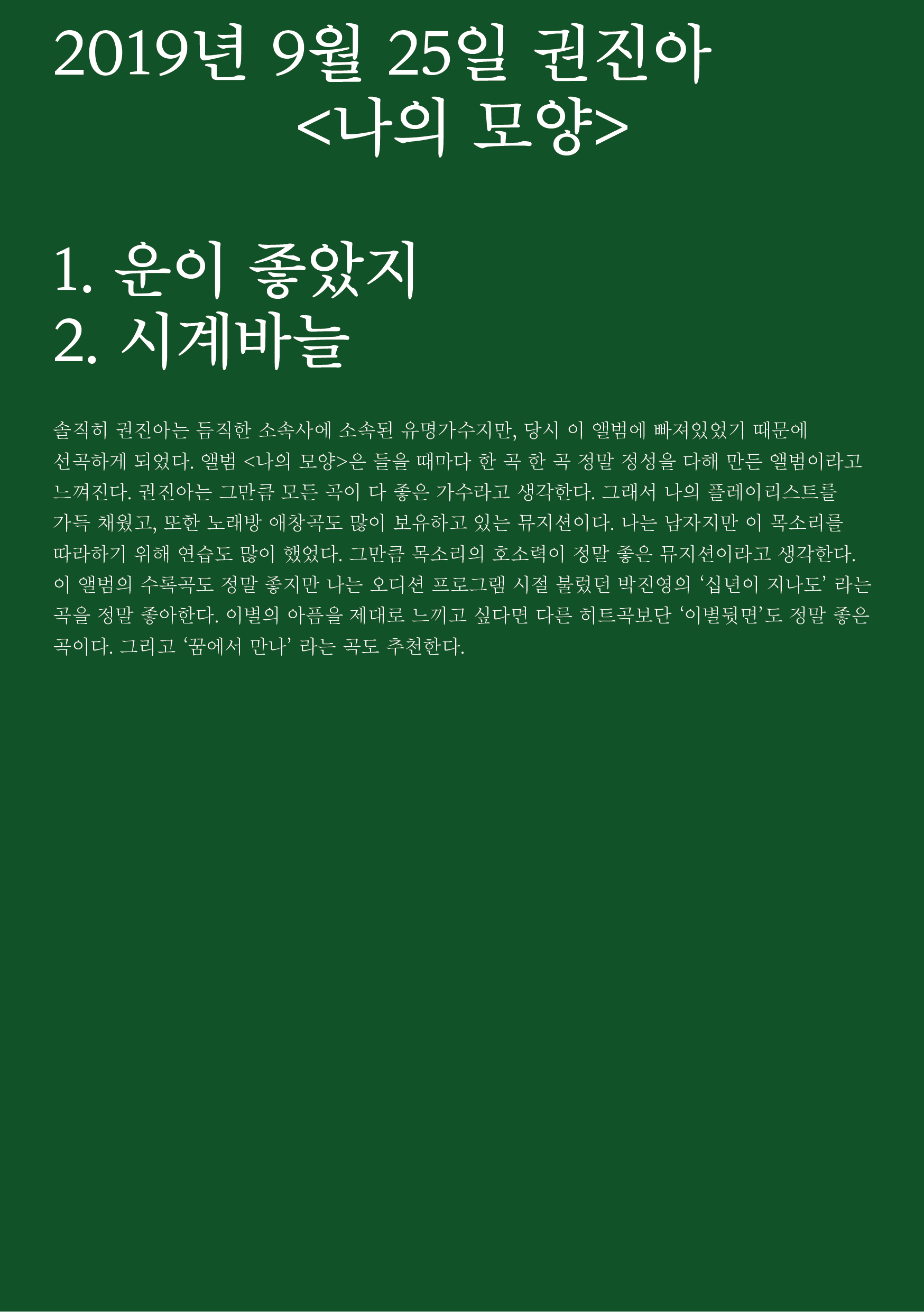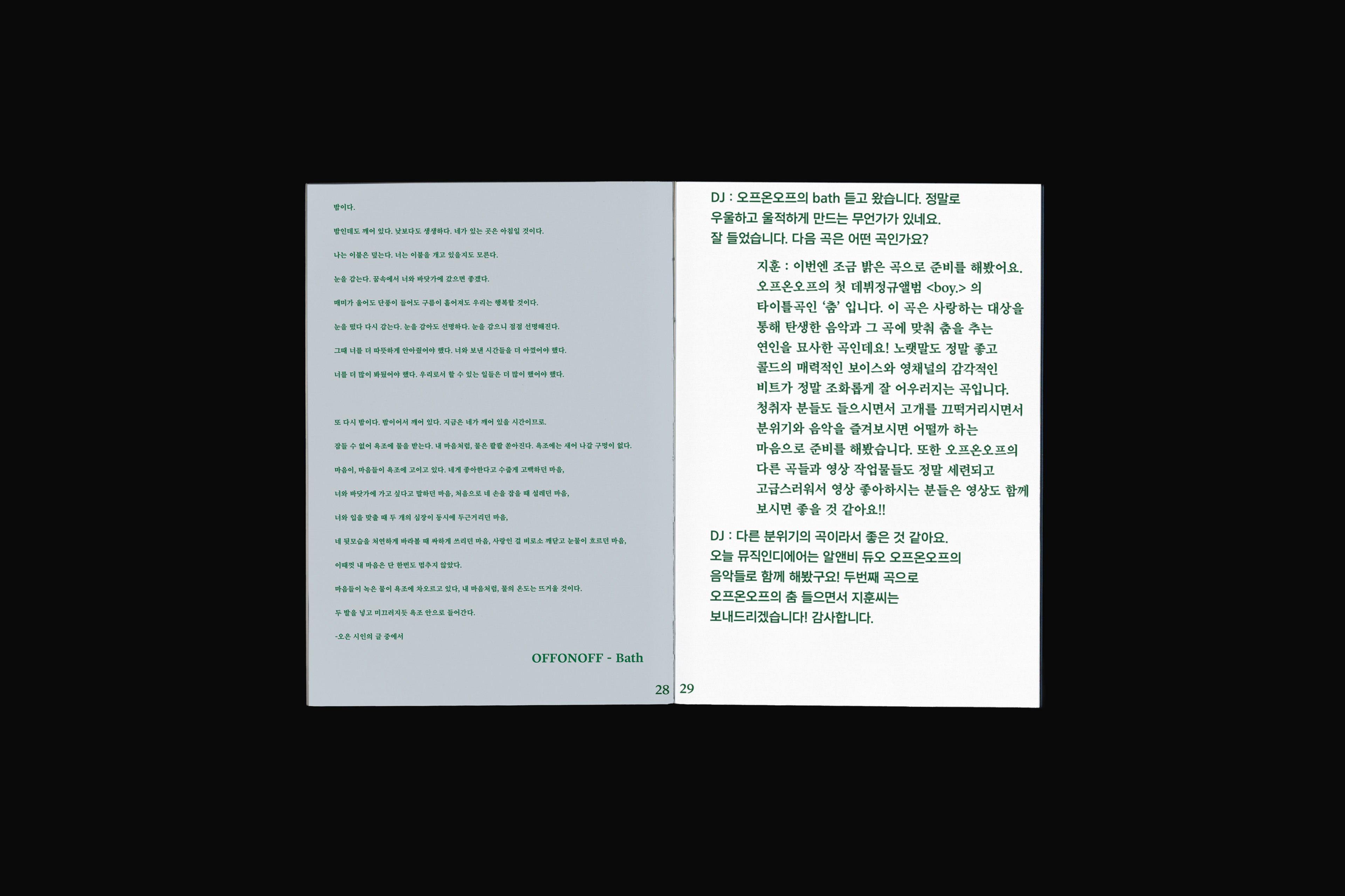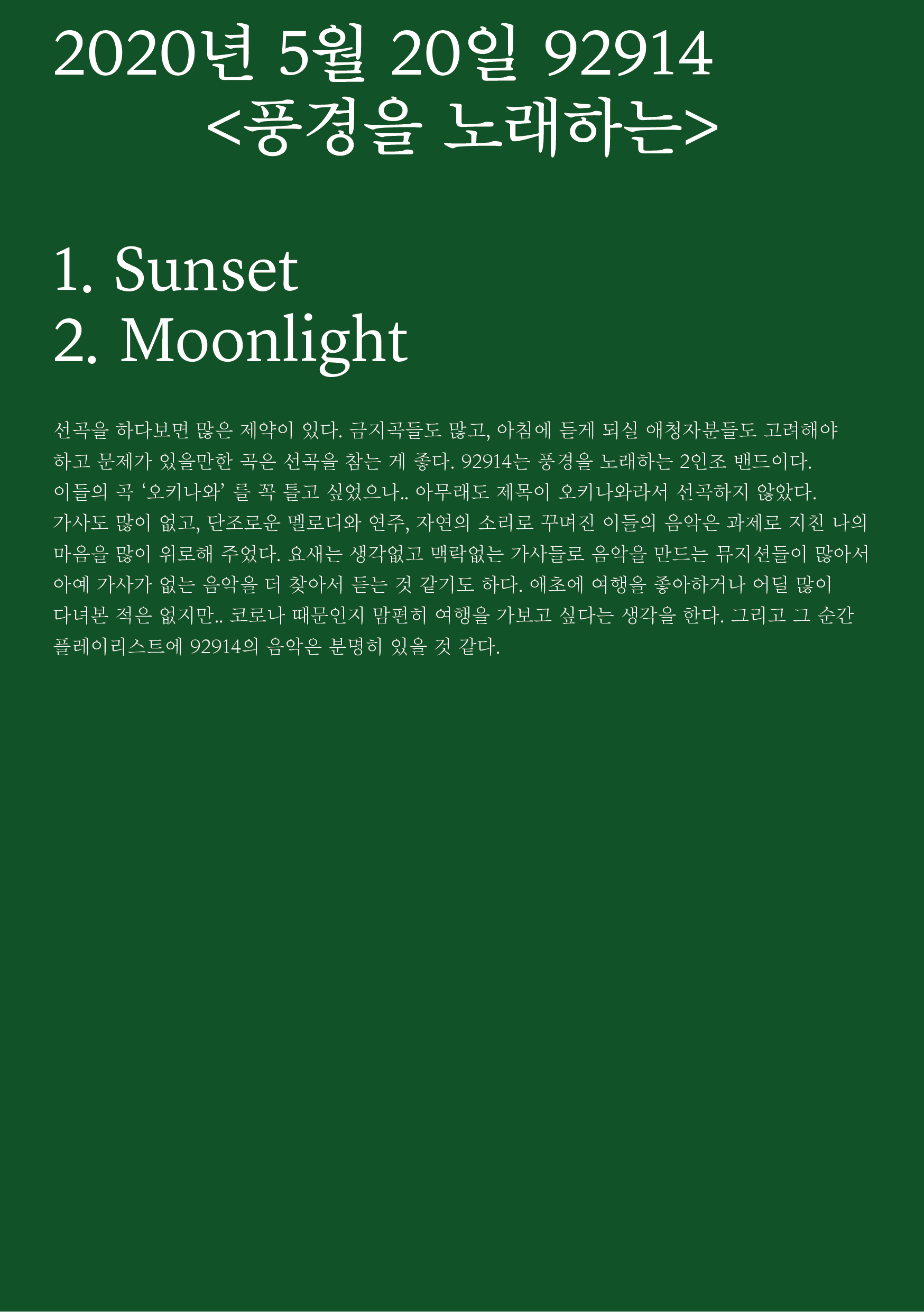 포항 MBC 모닝쇼의 코너 [뮤직 인디에어]의 대본을 책으로 기록