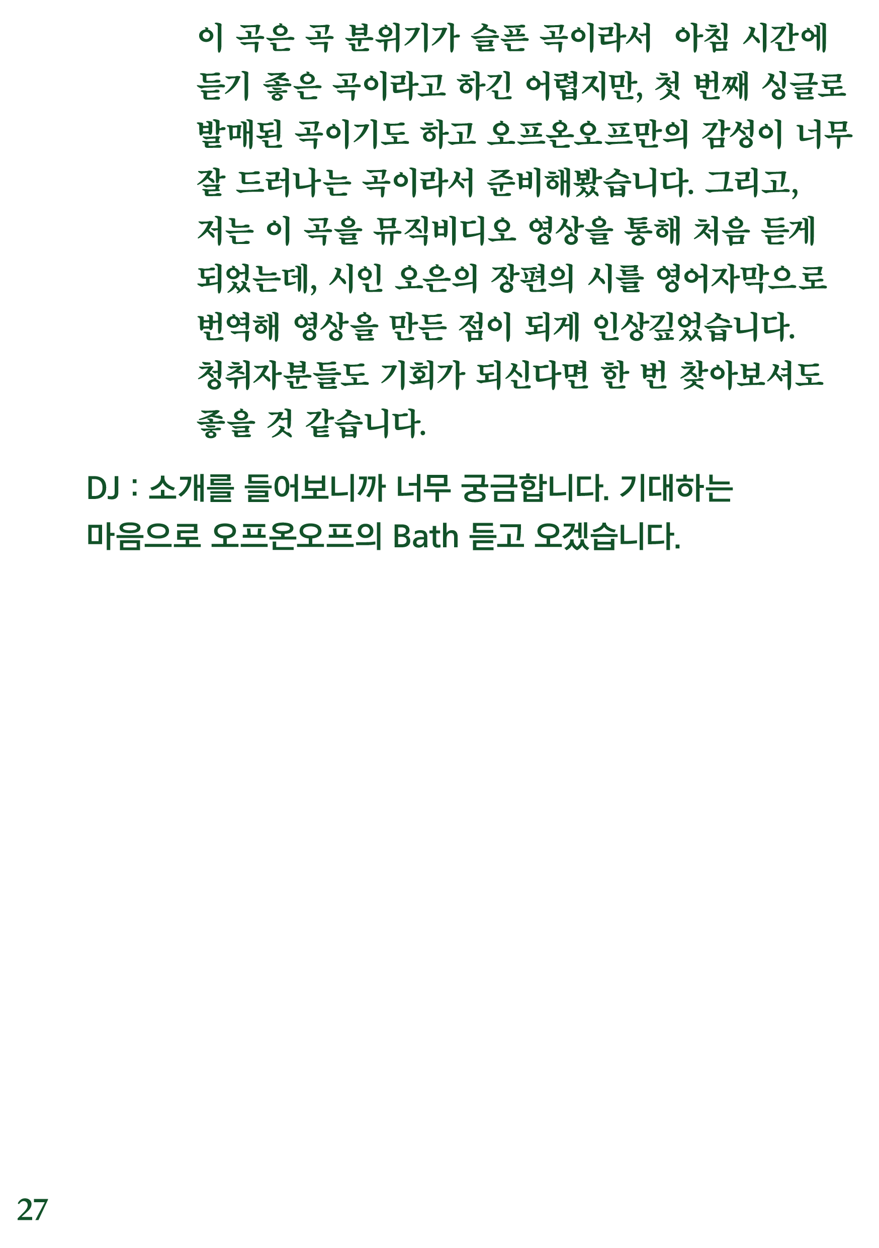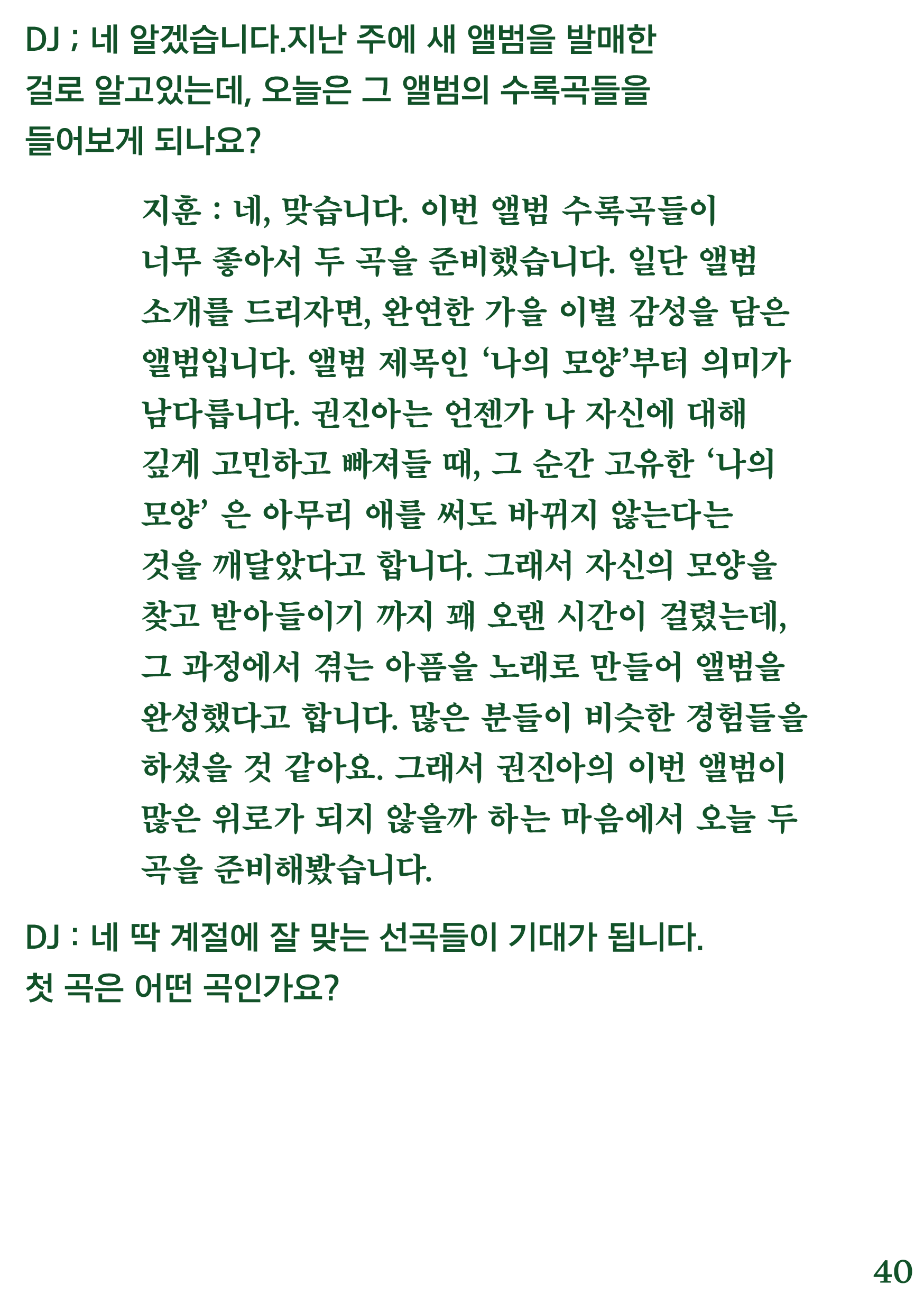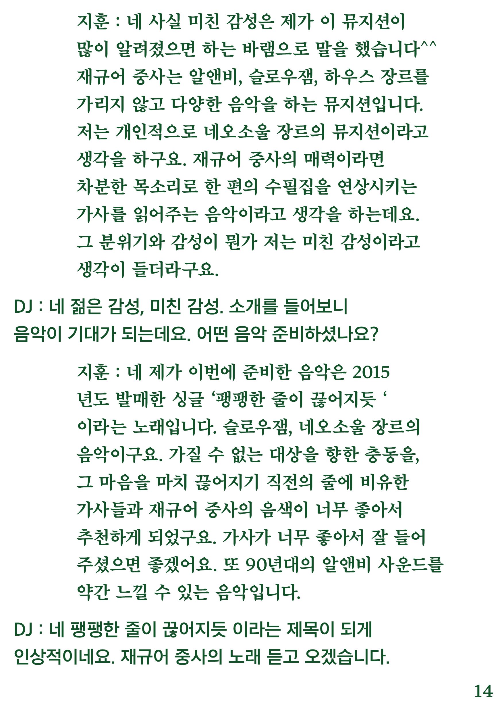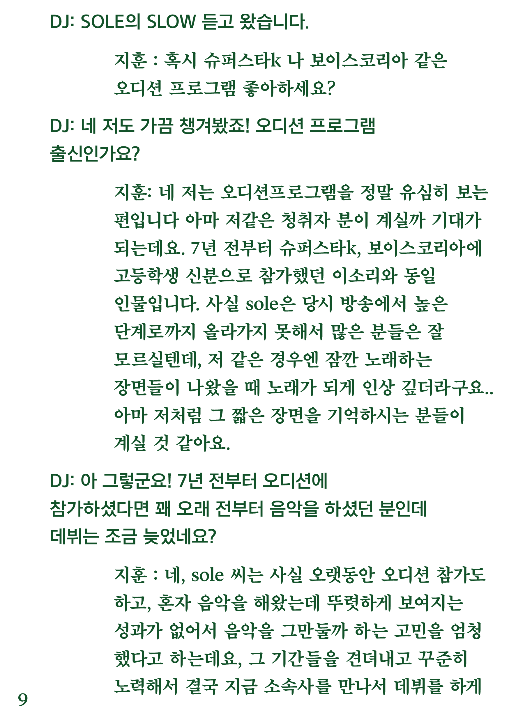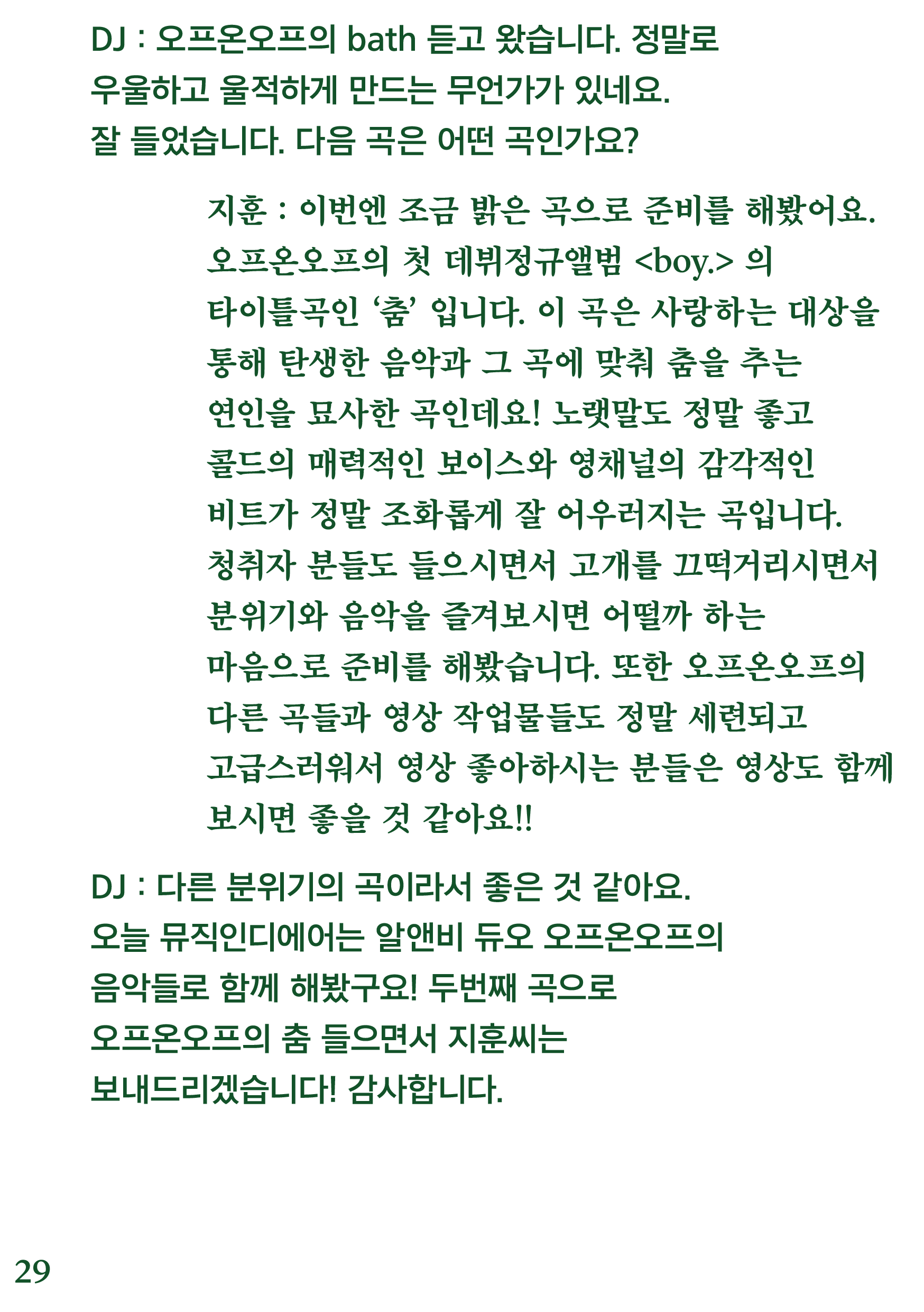 포항 MBC 모닝쇼의 코너 [뮤직 인디에어]의 대본을 책으로 기록