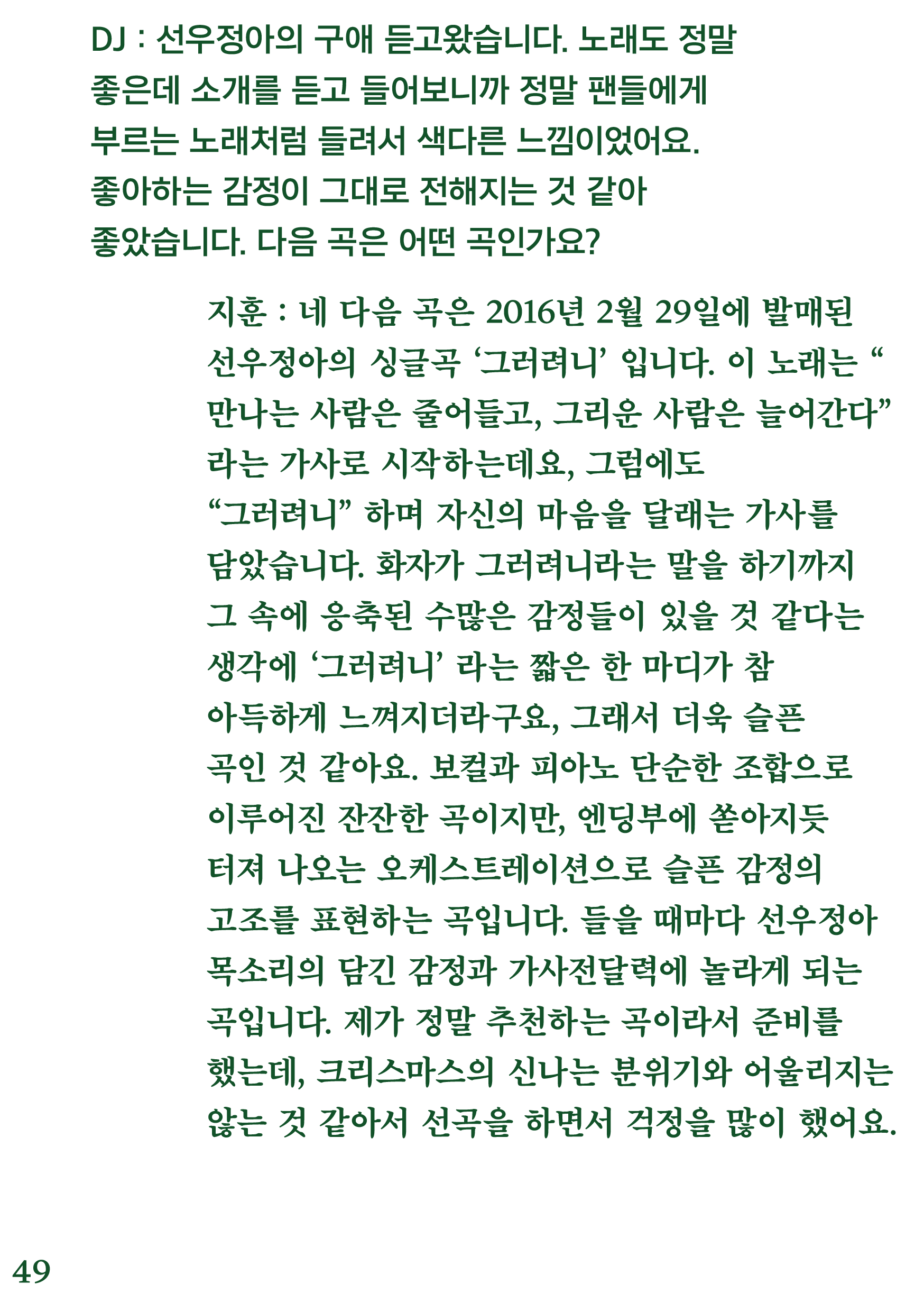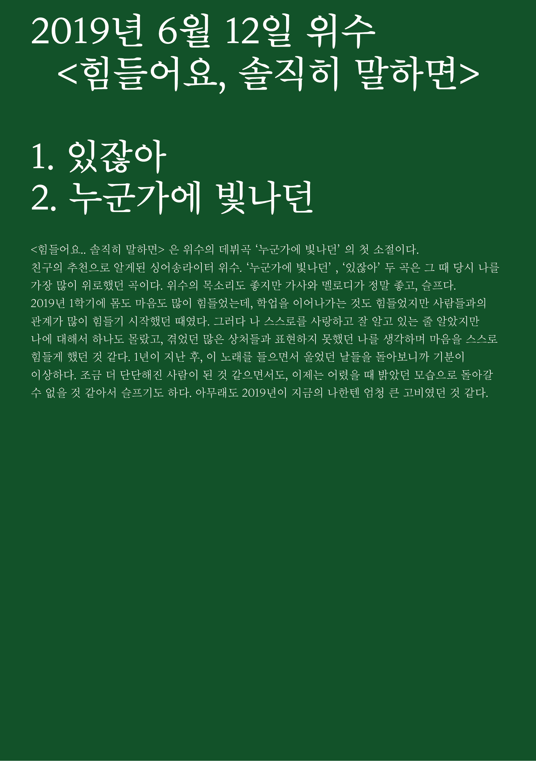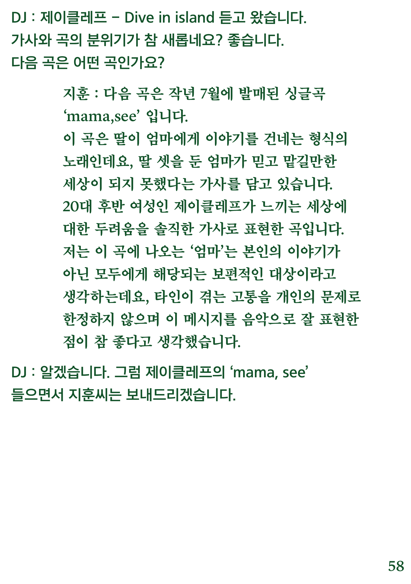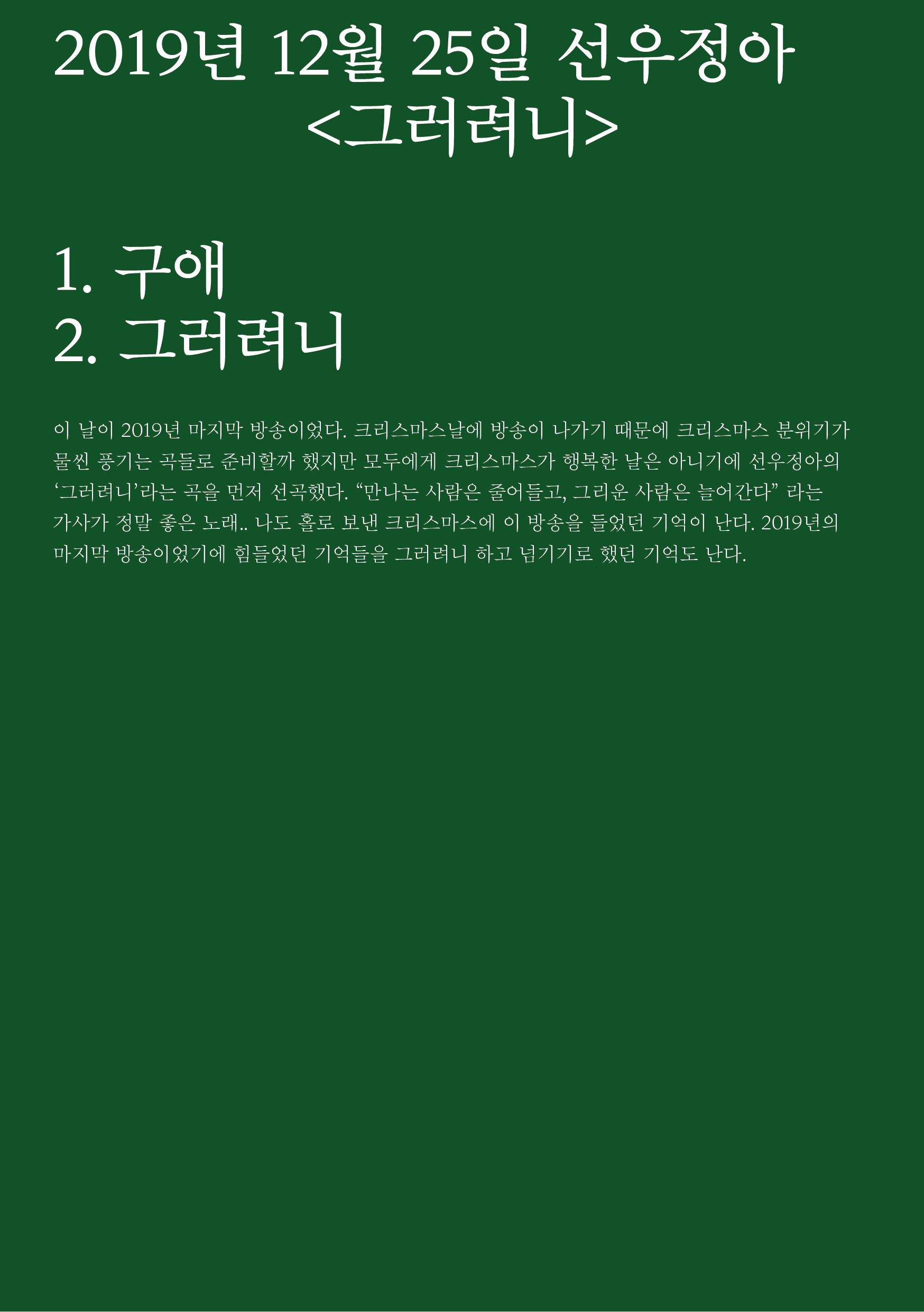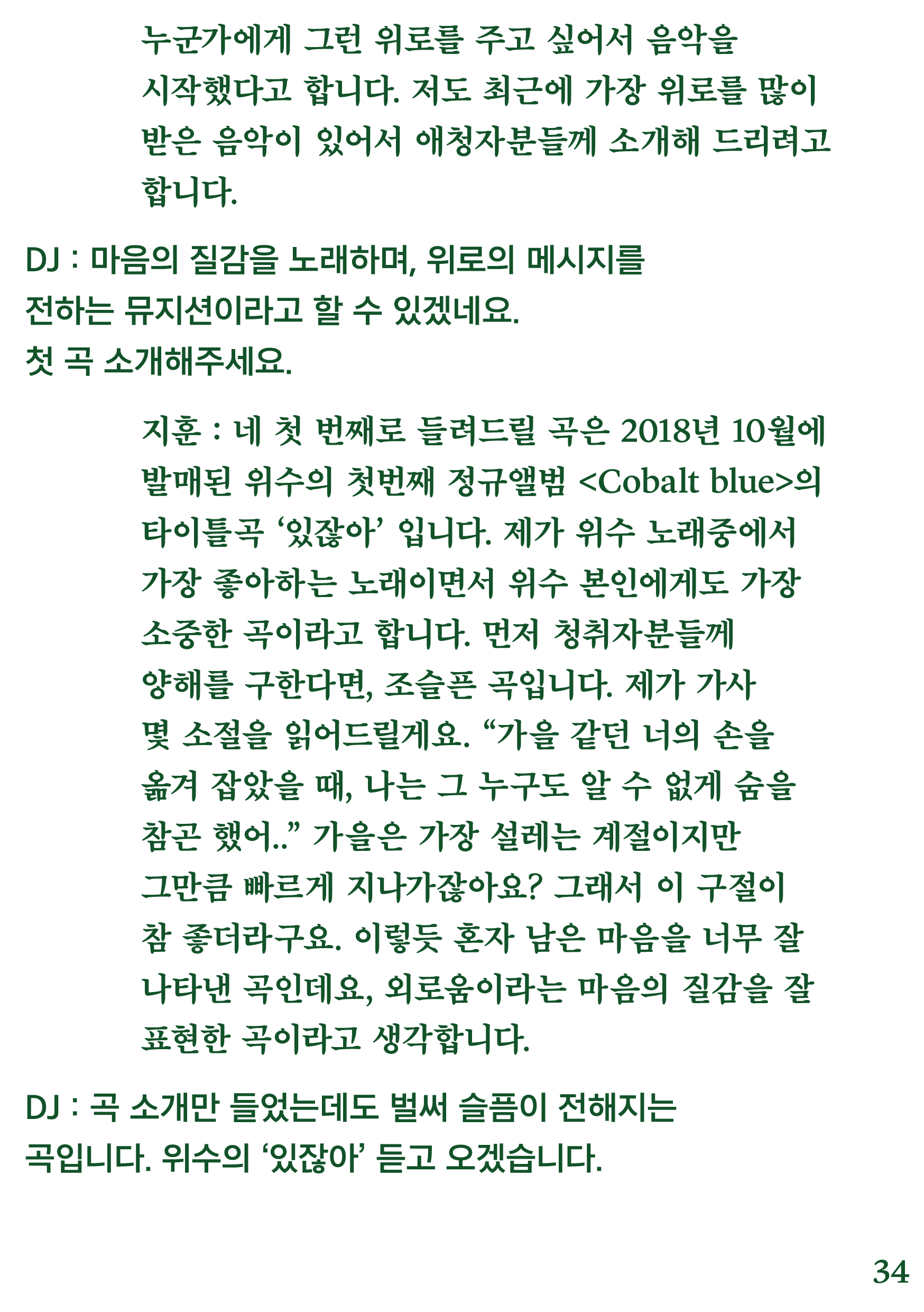 포항 MBC 모닝쇼의 코너 [뮤직 인디에어]의 대본을 책으로 기록
