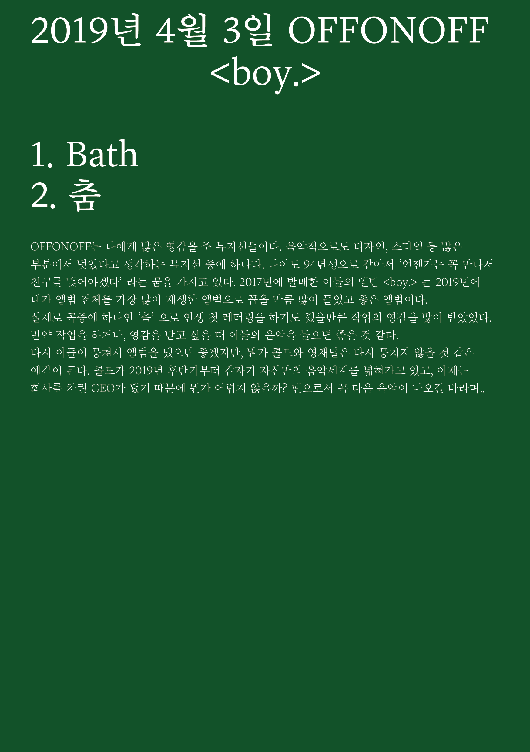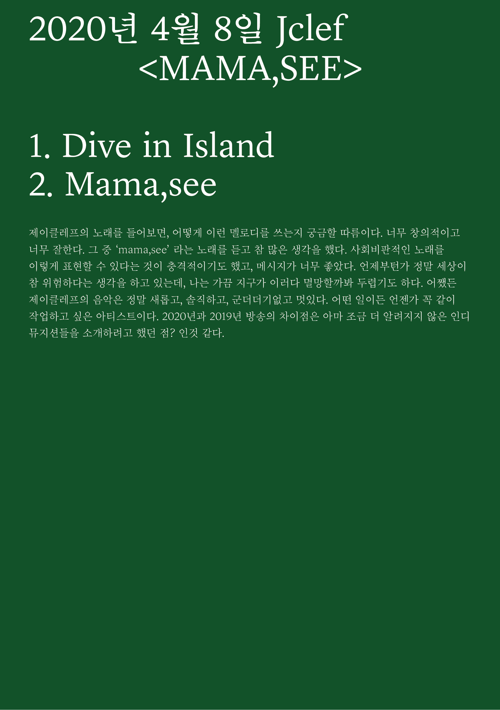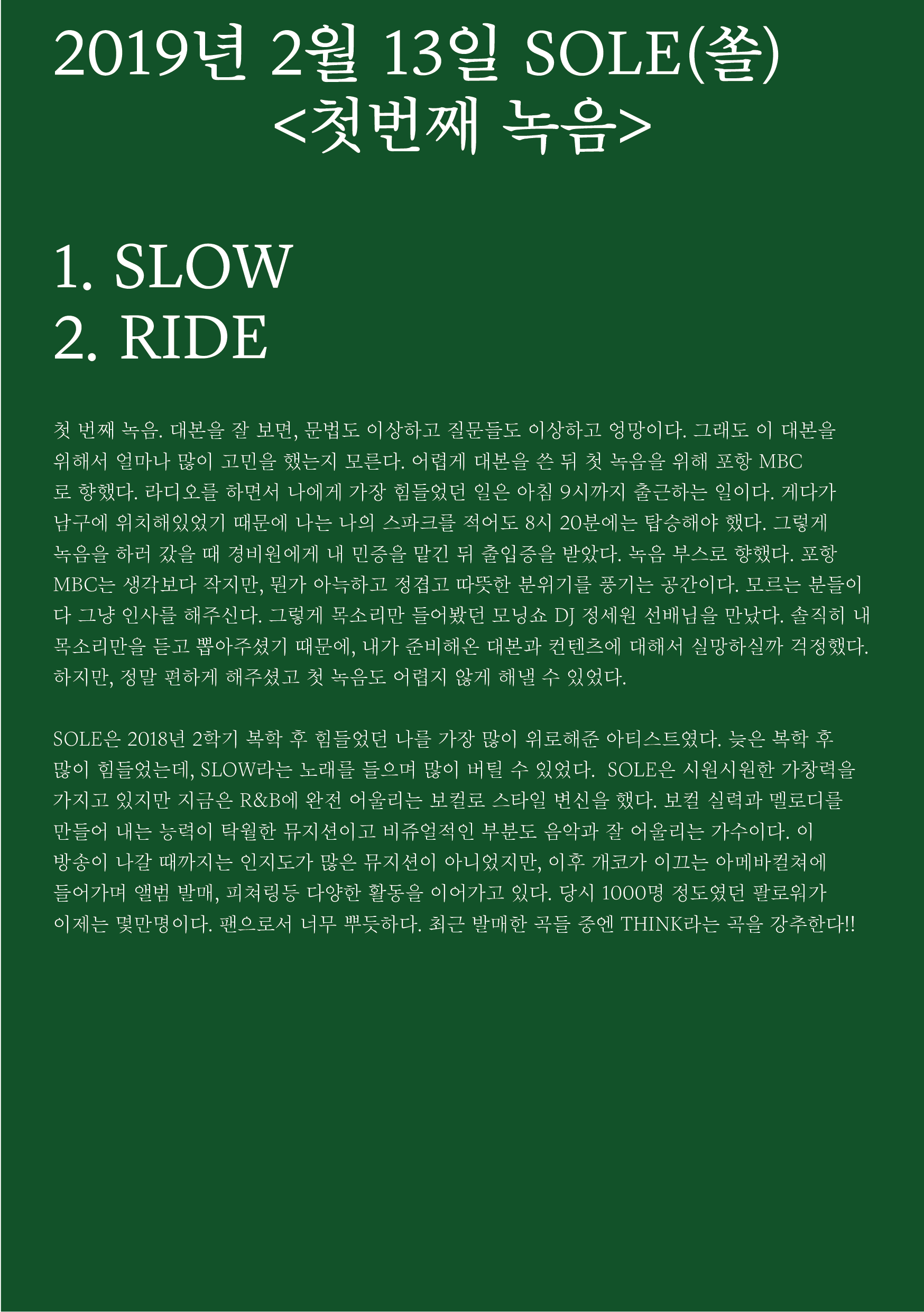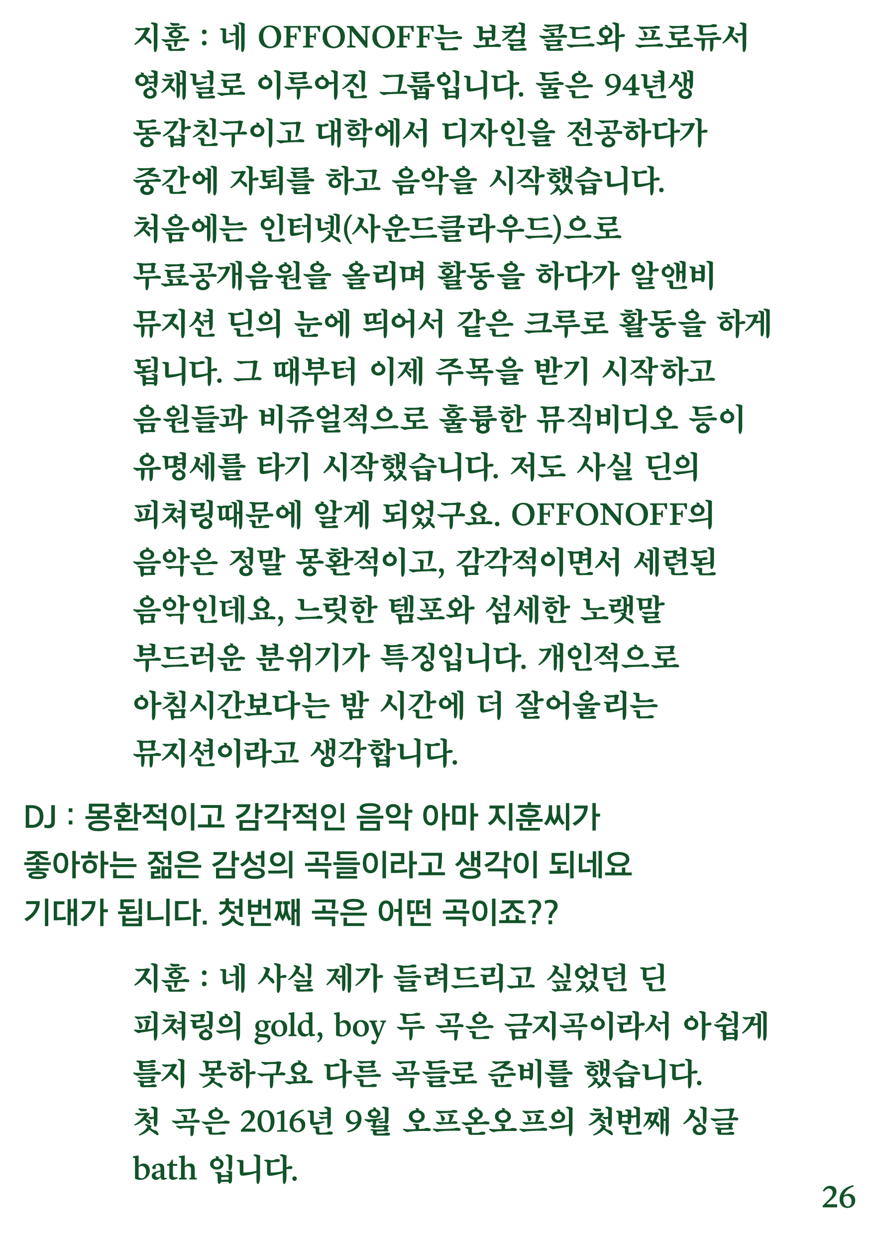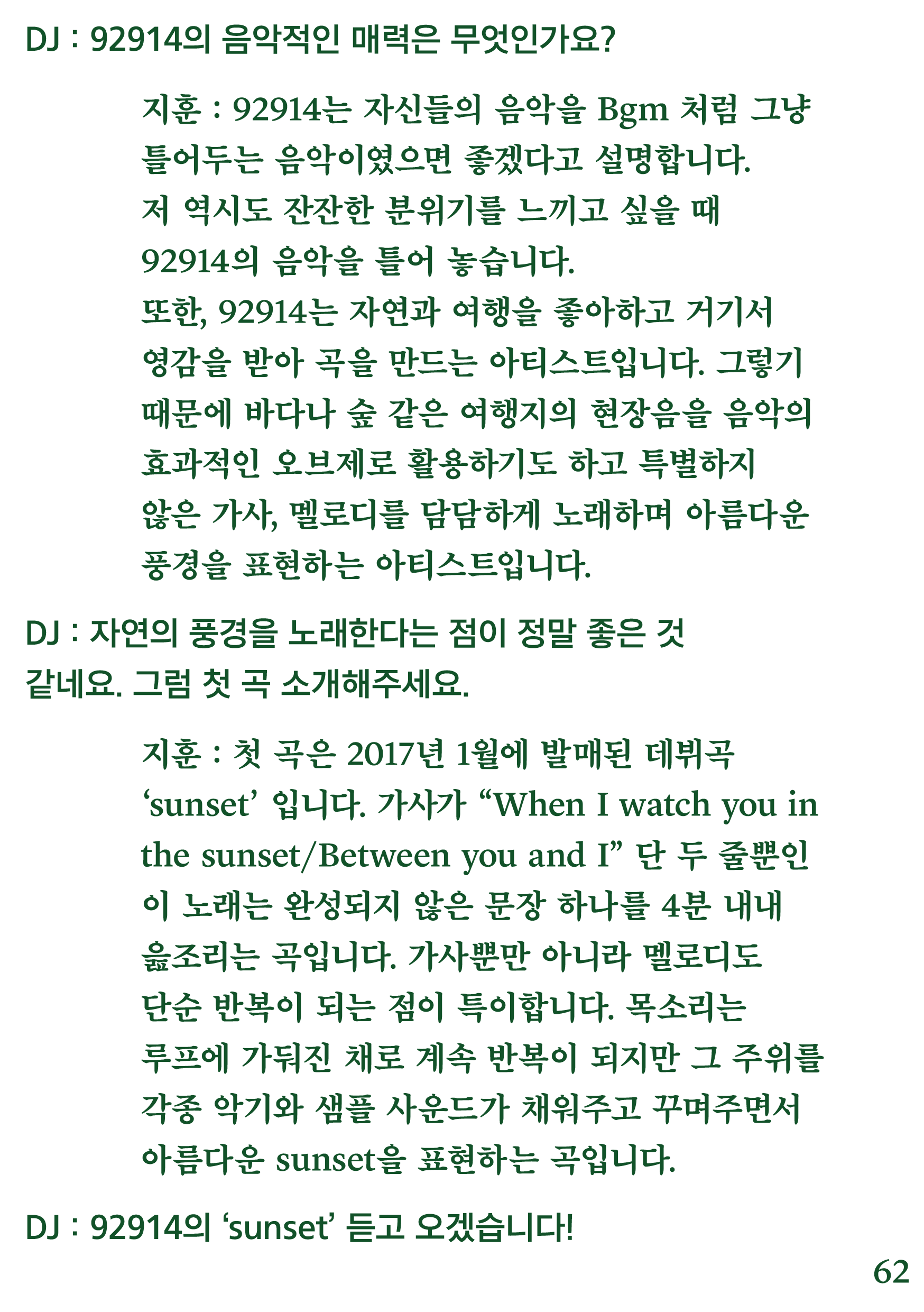 포항 MBC 모닝쇼의 코너 [뮤직 인디에어]의 대본을 책으로 기록